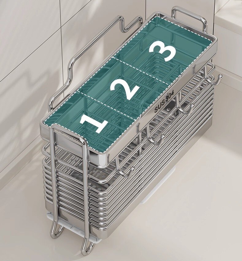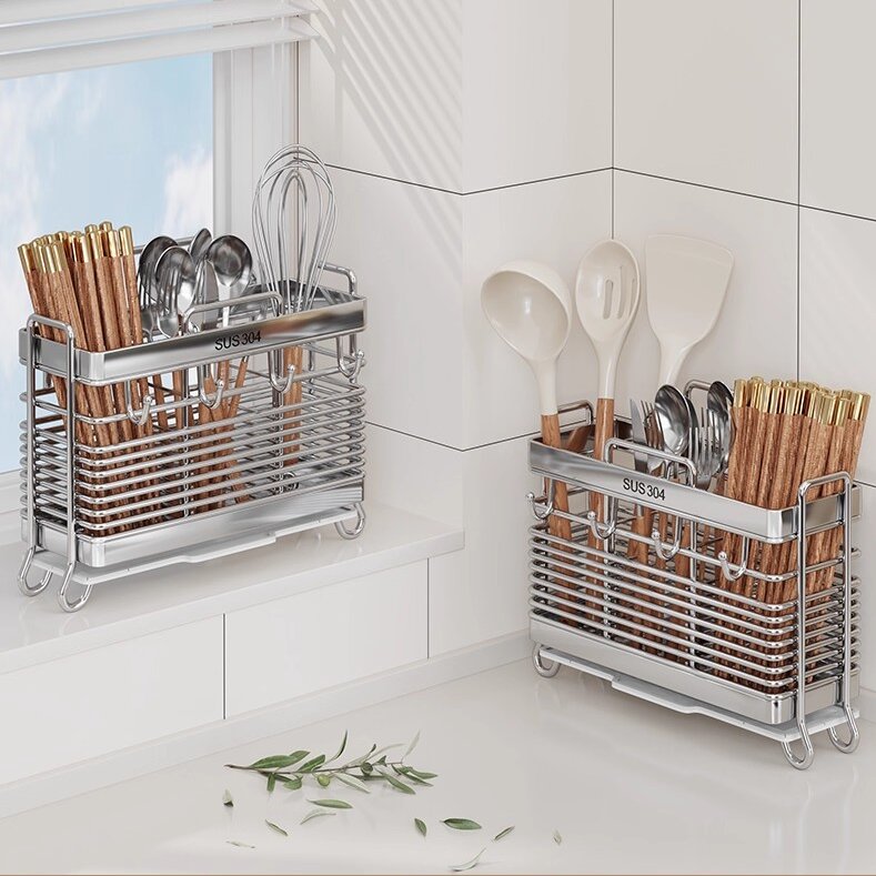 Uma das características de destaque do porta-utensílios de três molduras é seu design inteligente de três compartimentos. Ao contrário de muitos suportes de compartimento único que deixam os utensílios misturados, este design permite a categorização. Você pode separar facilmente colheres, garfos e facas ou até mesmo dedicar uma seção a utensílios especiais, como pinças ou espátulas. Isso não apenas torna mais simples encontrar rapidamente a ferramenta que você precisa, mas também mantém sua bancada com aparência organizada. Alguns outros suportes podem ter um único espaço grande, que pode rapidamente se transformar em uma bagunça caótica, com utensílios caindo e ficando emaranhados. O Porta Utensílios com Três Molduras, com seu layout bem pensado, garante que cada utensílio tenha seu local designado, promovendo uma cozinha mais organizada e eficiente.